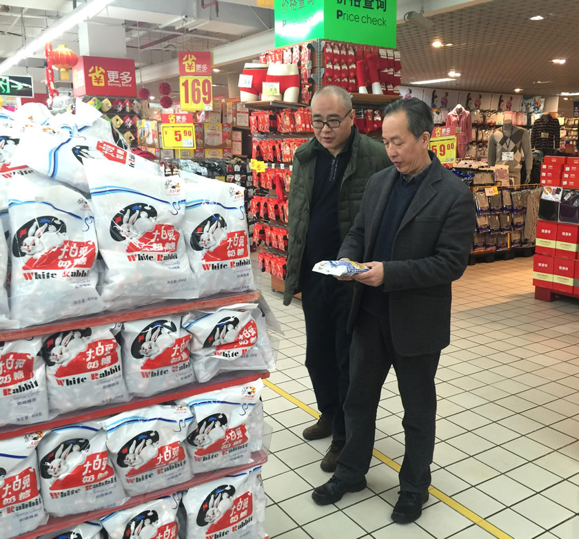 走訪過程中,藍總向一線銷售人員仔細詢問了大白兔等產品春節期間的供應、銷售、消費者反饋等等情況,并對產品的價格、出樣、上架、特殊陳列等等做了考察。在家樂福古北店,看到產品出樣齊全、陳列點多,陳列霸氣。藍總指出:對重點門店要重點建設,充分發揮重點門店的優勢,讓門店的大客流給我們帶來更大的銷量。在City super重點考察了大白兔Agnes.b這款跨界新品的市場銷售狀況。藍總指出,這款產品是我們第一次進行跨界產品合作,不僅是一款新品,更重要的是給大白兔這個民族品牌注入了新的時尚文化元素,希望能挖掘出更大的市場潛力。期間,公司副總經理兼供銷公司總經理吳堅就傳統旺季的市場銷售工作的開展狀況向藍總做了簡要匯報。