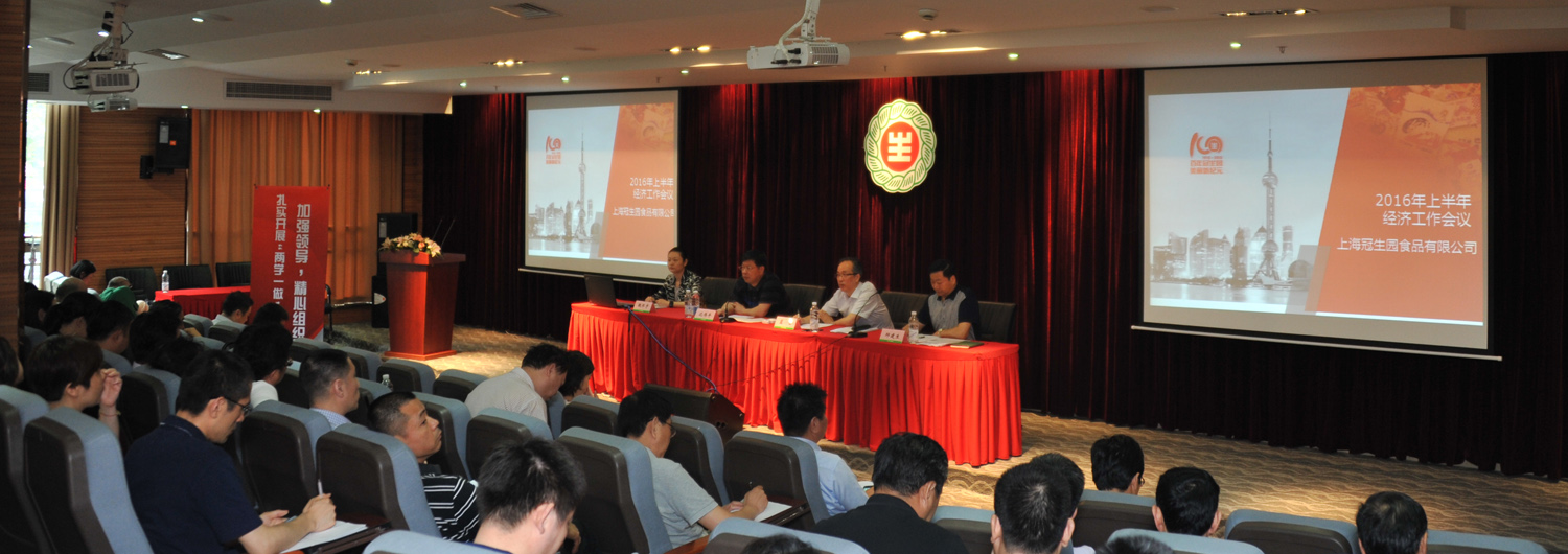 6月29日,上海冠生園食品有限公司召開2016年上半年經濟工作會議。會上梅林股份副總裁、冠生園總經理藍雪作2016年上半年經濟工作總結和2016年下半年經濟工作計劃報告,冠生園黨委書記、副總經理魏懷宇作2016年上半年黨委工作總結和2016年下半年黨委計劃報告。梅林股份總裁沈偉平應邀參加會議,并作重要講話。會議由冠生園黨委副書記邱建生主持。