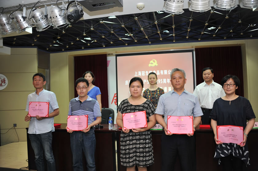 7月1日,冠生園黨委舉行紀念中國共產黨建黨95周年大會暨“兩學一做”黨課報告會。公司二級班子成員、工會、共青團負責人及黨代會代表、“兩優一先”先進代表等140余人出席會議。黨委書記、副總經理魏懷宇作了“兩學一做”專題黨課報告。會議由冠生園黨委副書記、紀委書記邱建生主持。會上,黨委副書記、人力資源部經理曹崢萍宣讀了表彰冠生園“兩優一先”評選活動中評選出的10個先進基層黨組織、7位優秀黨務工作者和15位優秀共產黨員的表彰決定;部分先進基層黨組織和優秀共產黨員、優秀黨務工作者的先進事跡在會上進行了宣講。
