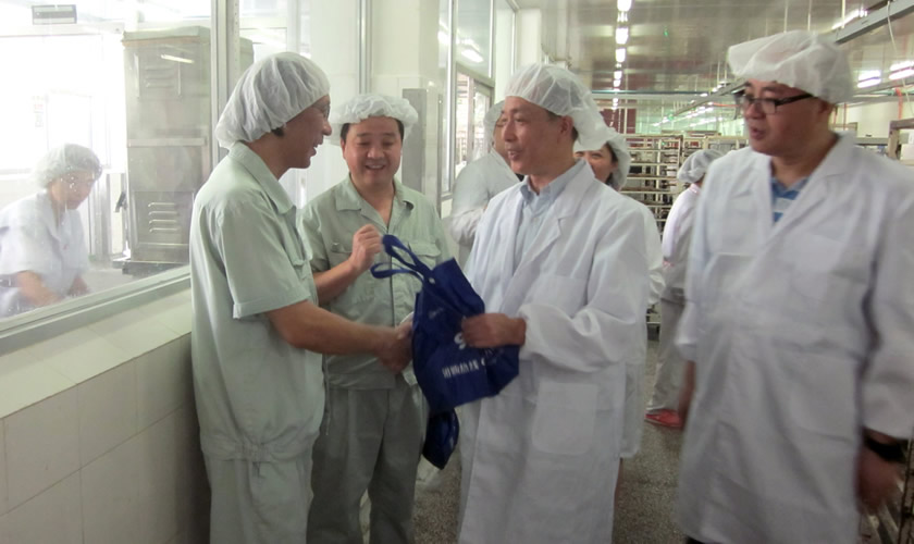 7月28日,梅林股份副總裁、冠生園總經理藍雪、副總經理吳堅、黨委副書記邱建生和工會主席楊妍等一行,冒著近40度的高溫分別到冠益公司及調味品公司生產車間,對堅守在高溫下的生產一線職工進行高溫慰問并送上清涼。