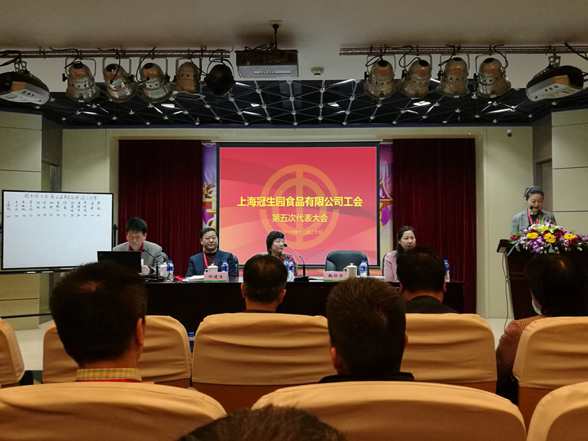 第五次代表大會上,梅林股份公司工會主席王雪娟、冠生園團委書記朱秋楓分別致賀詞。大會審議通過了工會主席楊妍所作的第四屆工會委員會工作報告和工會經審委主任劉渝所作的第四屆經費審查委員會工作報告。大會通過民主選舉選出第五屆工會經審委員會委員。