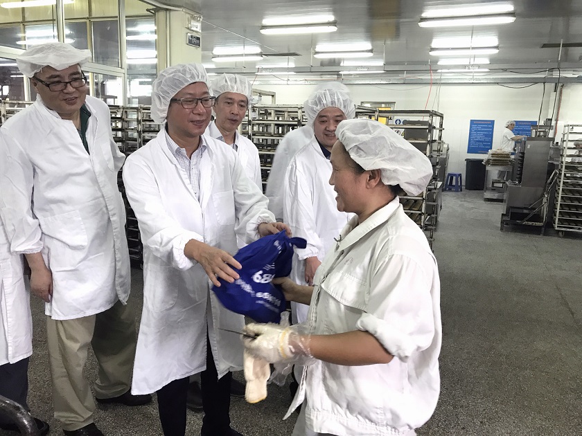 8月4日,梅林股份總裁王國(guó)祥,梅林股份副總裁、冠生園總經(jīng)理藍(lán)雪,冠生園副總經(jīng)理吳堅(jiān)等一行冒著高溫到冠生園益民公司和華佗公司,慰問正在炎熱高溫下忙碌生產(chǎn)的職工,并送上慰問品。
