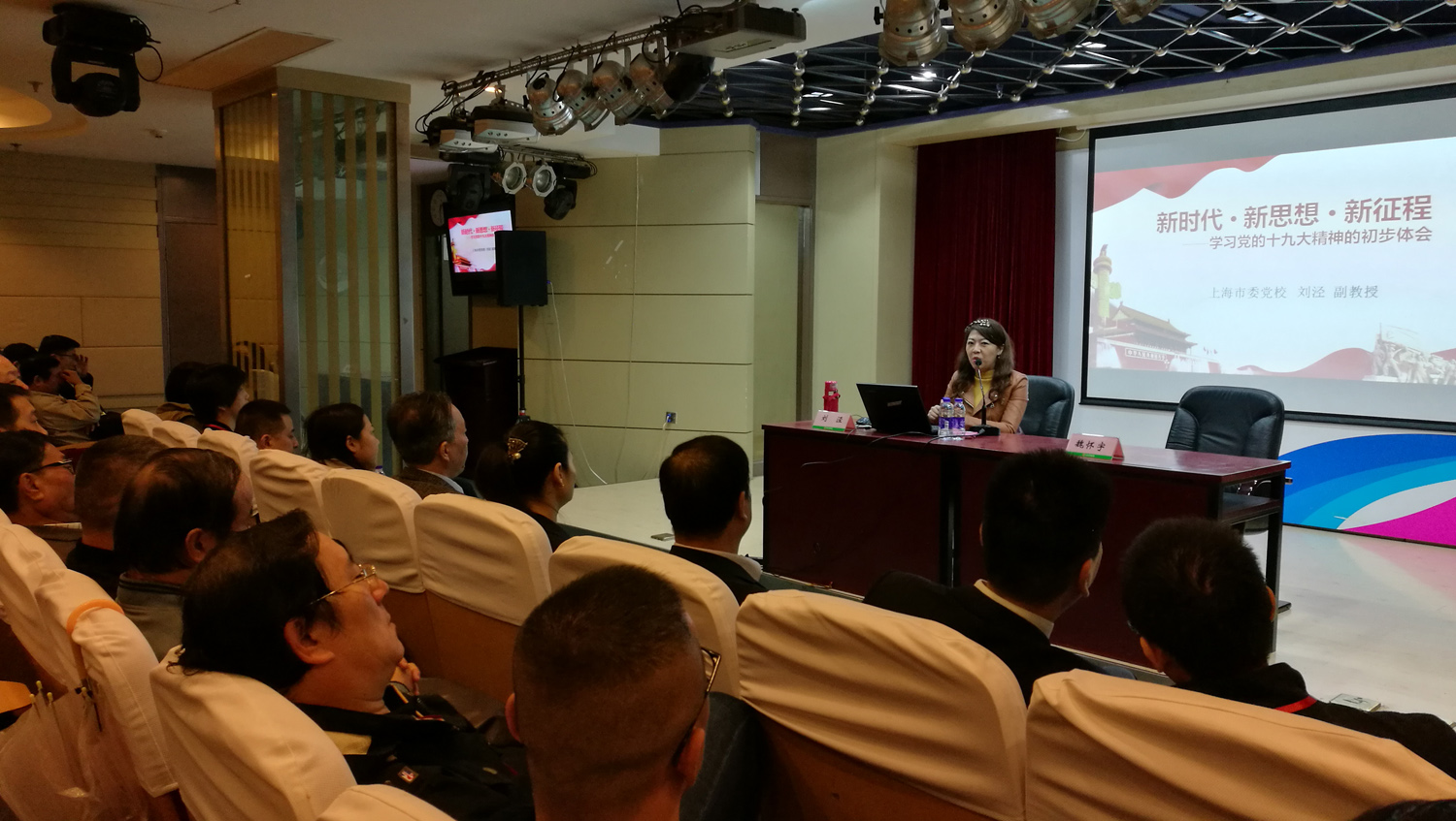 本次報告會邀請了上海市委黨校劉涇教授作主題報告。劉教授以“新時代、新思想、新征程”為主題,圍繞黨的十九大報告中所體現出的10個“新”,系統全面地講解了大會提出的重要思想、重要觀點、重大判斷、重大舉措,解讀了黨的十九大報告中大家關注的重要內容。輔導報告主題鮮明、重點突出,特別是結合自身的感受體會,講得生動活潑、深入淺出,對于深入學習、準確把握黨的十九大精神很有幫助、很有啟發。
