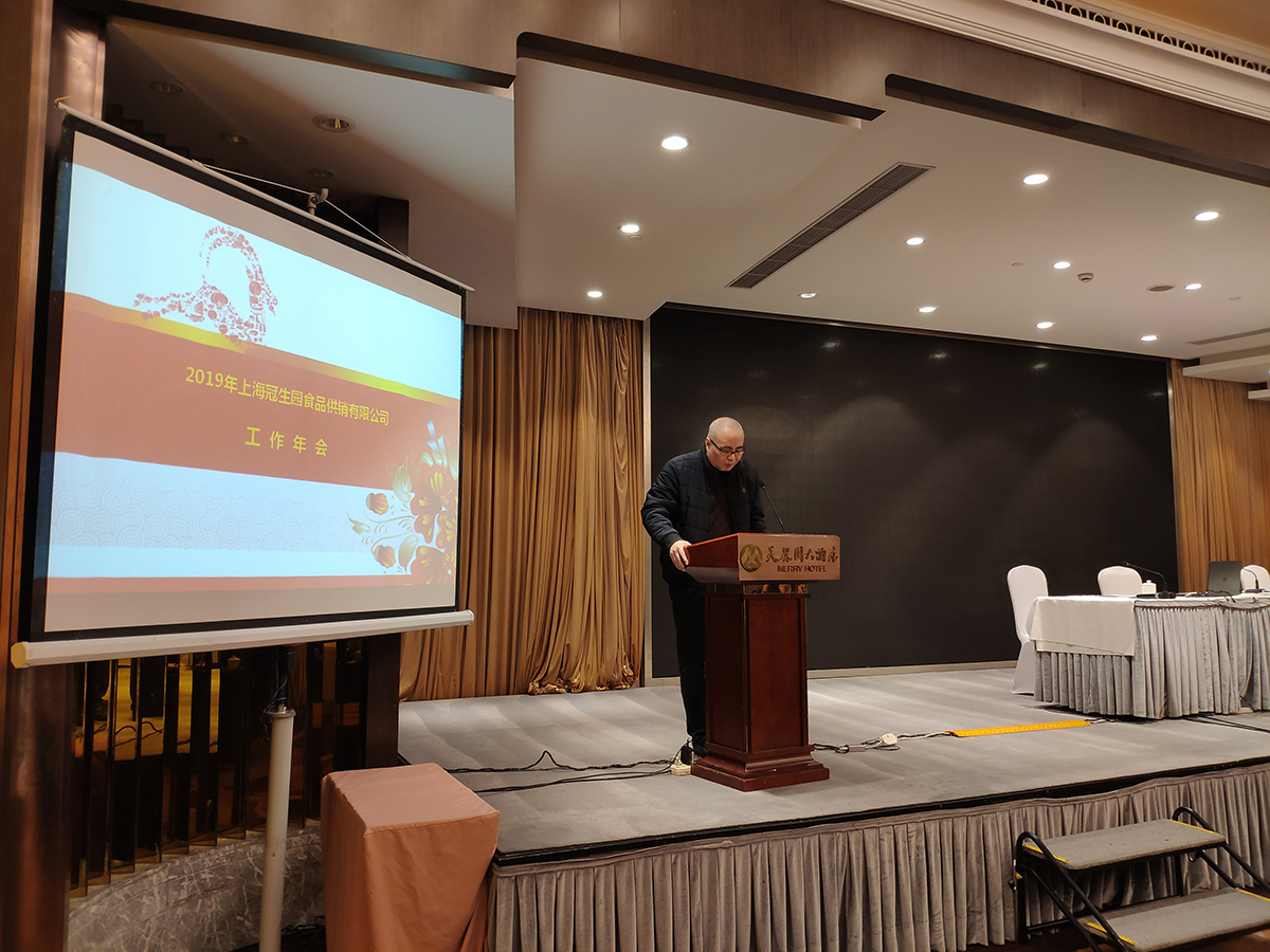 2月13日,上海冠生園食品供銷有限公司召開2019年度工作會議。會上冠生園供銷總經理郭智勇作2018年度經濟工作總結和2019年經濟工作計劃報告。冠生園總經理吳堅及黨政班子成員出席會議,吳堅總經理作重要講話。會議由冠生園供銷公司黨總支書記黃健主持。