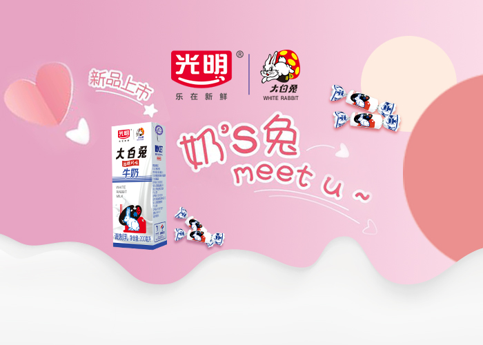 近日,大白兔攜手光明跨界聯合推出了“大白兔奶糖風味牛奶”,同樣的甜蜜,更添一份香醇絲滑!