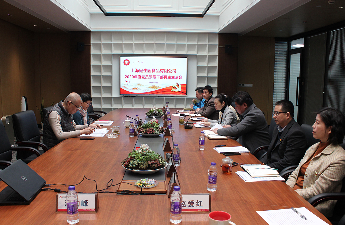 3月9日,冠生園召開2020年度黨員領導干部民主生活會。梅林股份黨委書記、董事長吳堅出席會議并講話,梅林股份黨委委員、組織部部長許秀孌到會指導,冠生園黨委書記、副總經(jīng)理魏懷宇主持會議。